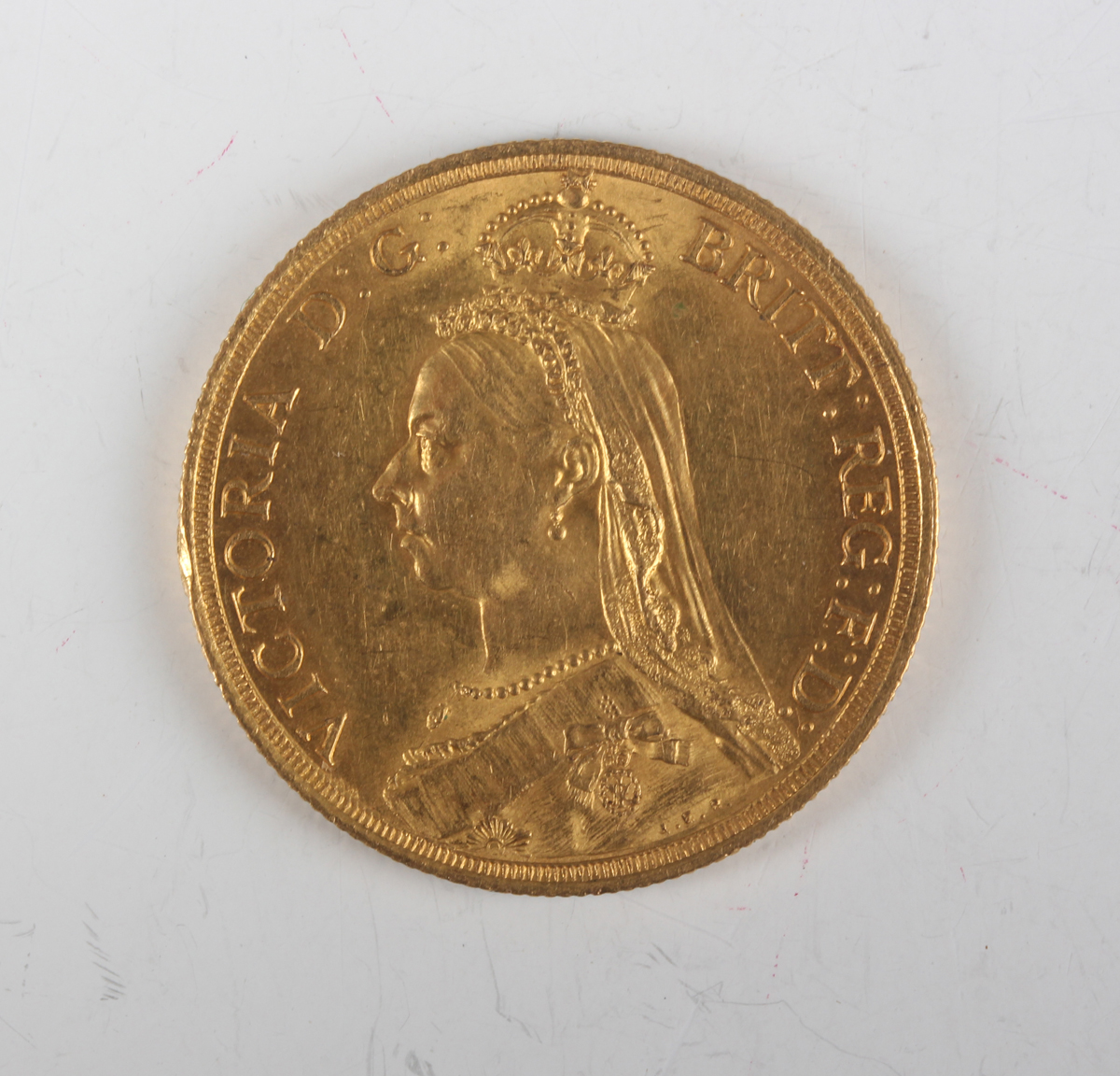 A Victoria Jubilee Head gold two pounds 1887, Sp 3865 (good-very fine).