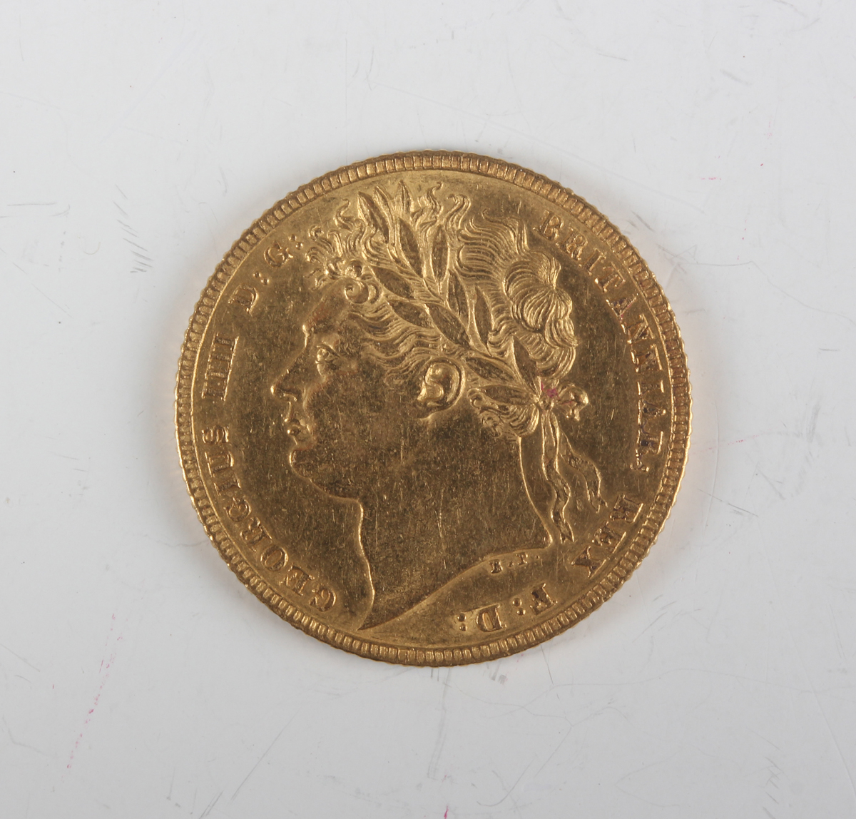 A scarce George IV sovereign 1822, first laureate head, Sp 3800 (good-very fine).