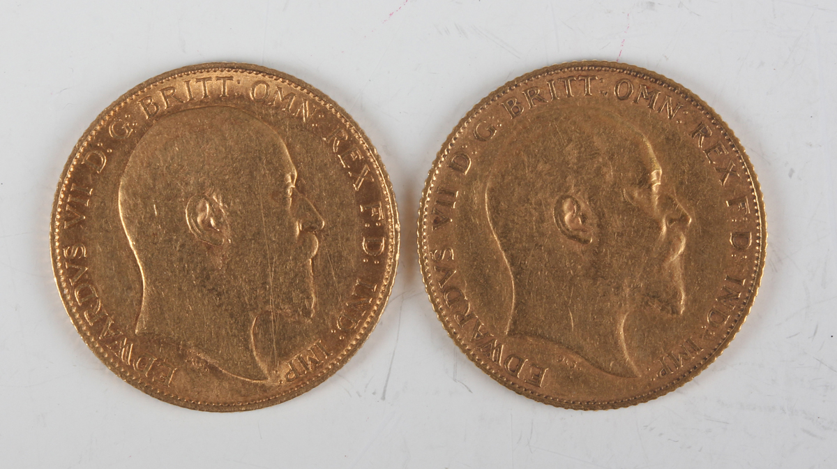Two Edward VII half-sovereigns, 1904 and 1904 Perth mint, no 'B.P.' in exergue.