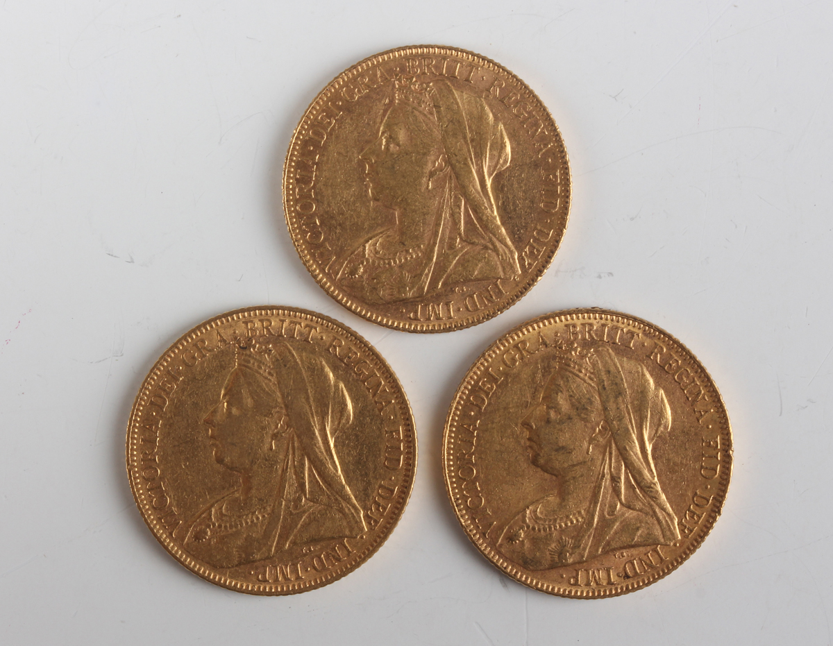 Three Victoria Veiled Head sovereigns, comprising 1901 Perth Mint and two 1901 Melbourne Mint.