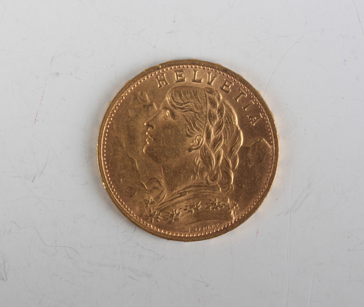 A Switzerland gold twenty francs 1927, Bern Mint.