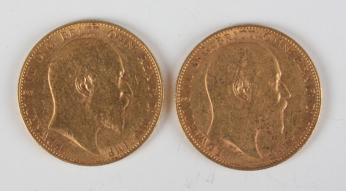 Two Edward VII sovereigns, both 1905 Perth Mint.