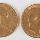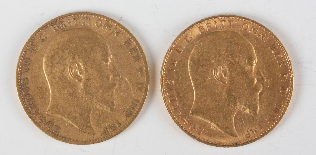 Two Edward VII sovereigns, both 1908.