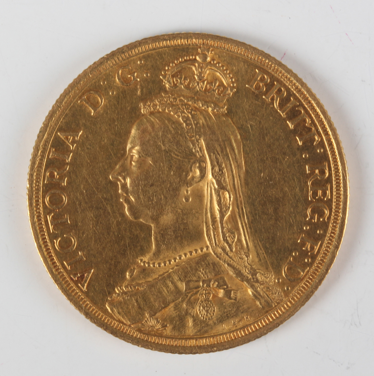 A Victoria Jubilee Head gold two pounds 1887, Sp 3865 (good-fine).