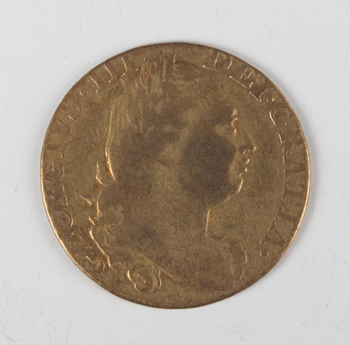 A George III guinea 1774, fourth laureate head, Sp 3728 (previously mounted).