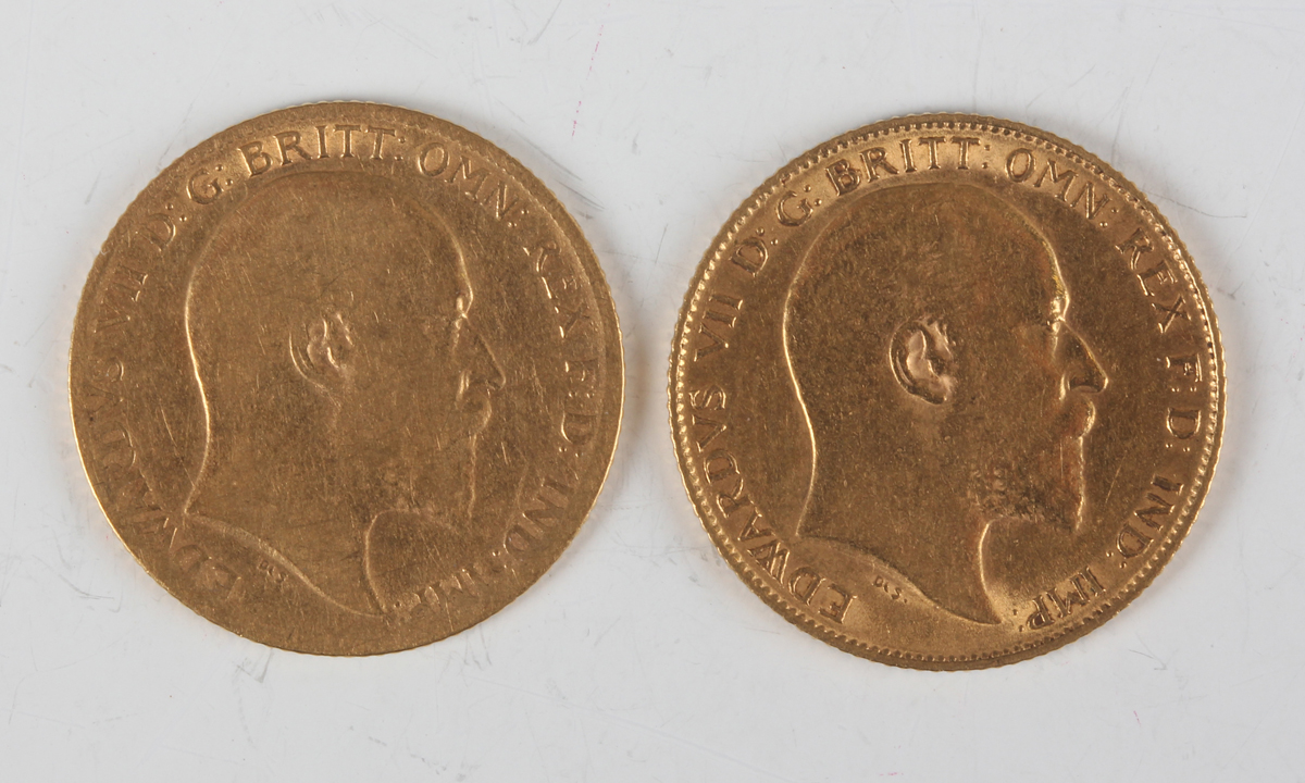 Two Edward VII half-sovereigns, 1905 and 1909.
