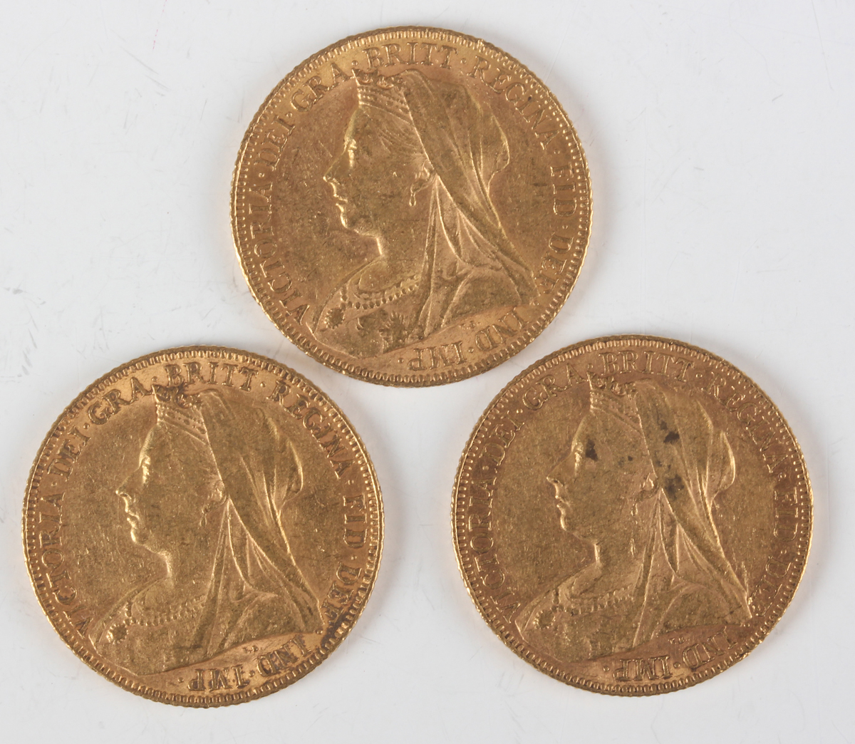 Three Victoria Veiled Head sovereigns, comprising 1901 Perth Mint and two 1901.