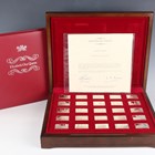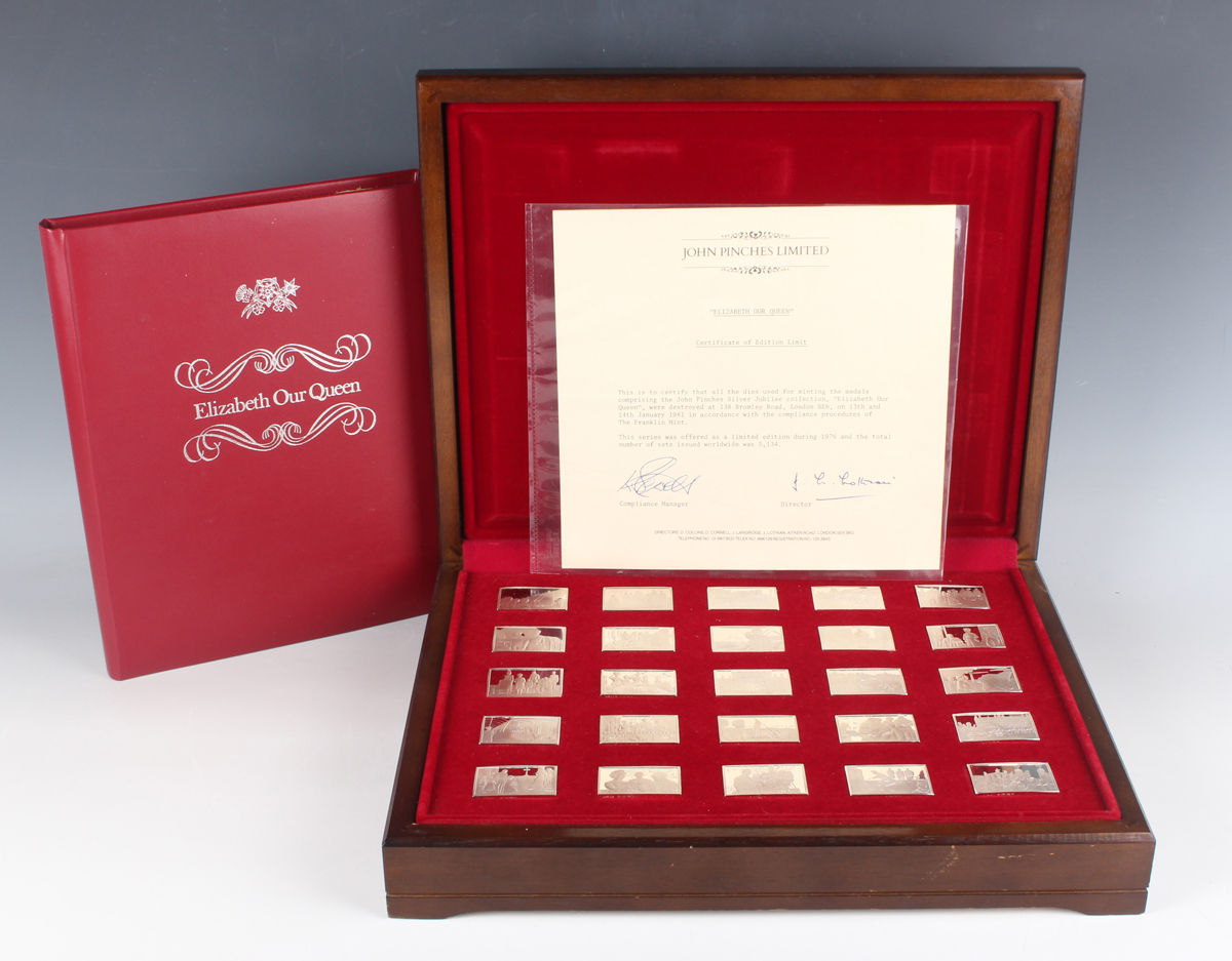 A set of twenty-five John Pinches Ltd silver ingots celebrating Elizabeth Our Queen, deluxe-cased with certificates.