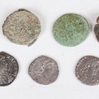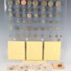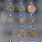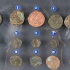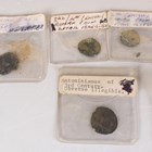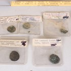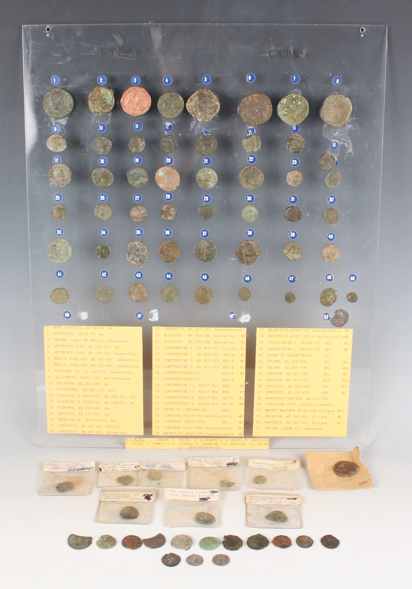 A collection of Roman Empire coinage, including three late 4th century siliquae, including Magnus Maximus 383-388 AD, reverse with Roma seated facing left, Trier Mint, the majority Blu-Tacked to a display board once belonging to Dennis Jordan. Note: Dennis Jordan (1920-2014) was an active member and public relations officer of the NCMD and an advocate of the Treasure Act and the Portable Antiquities Scheme. He was also the first Finders' Member of the Treasure Valuation Committee 1997-2003.