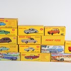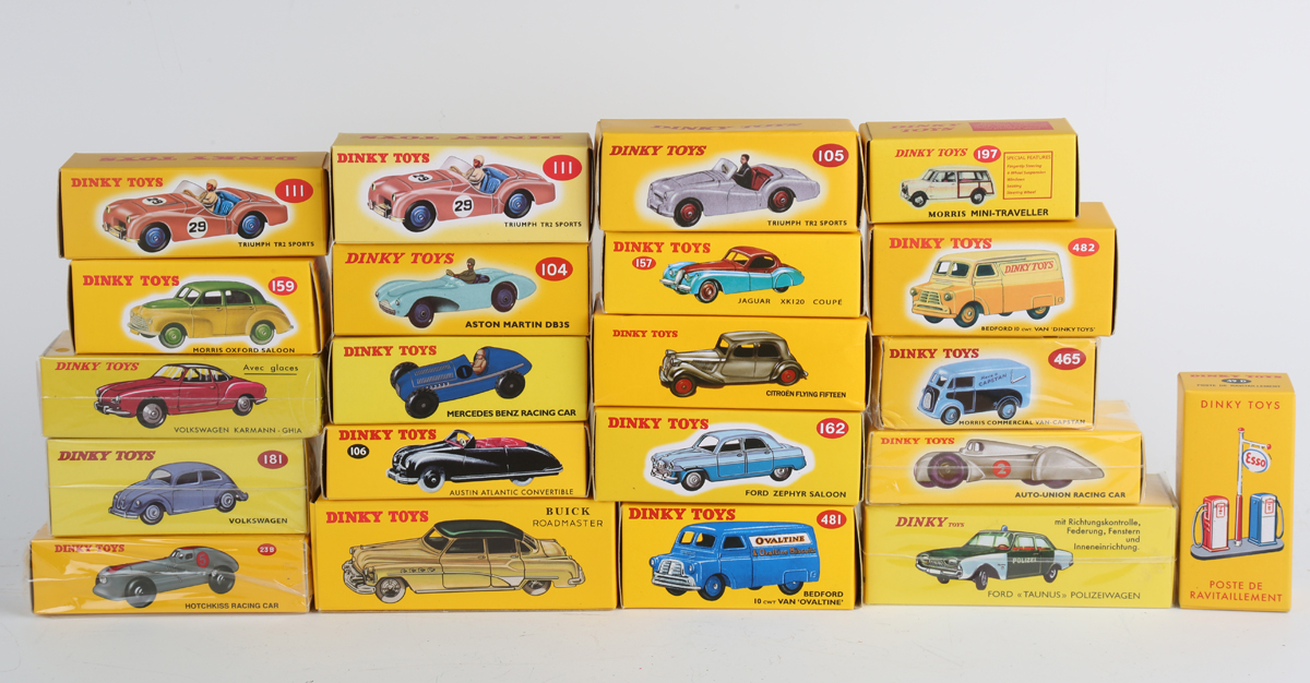 A group of Atlas/Norev Classic Dinky Toys Collection vehicles, including No. 182 Porsche 356A Coupé, No. 540 Opel Kadett, No. 111 Triumph TR2 Sports and No. 465 Morris commercial van ‘Capstan’, all boxed, and an accompanying magazine.