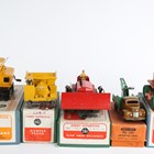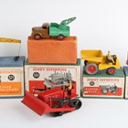 Four Dinky Supertoys, comprising No. 561 Blaw Knox bulldozer, No. 562 Dumper Truck, No. 563 Heavy Tractor and No. 571 Coles Mobile Crane, together with a Dinky Toys No. 25X Breakdown Lorry, all boxed (paint chips, boxes stained and scuffed).