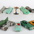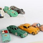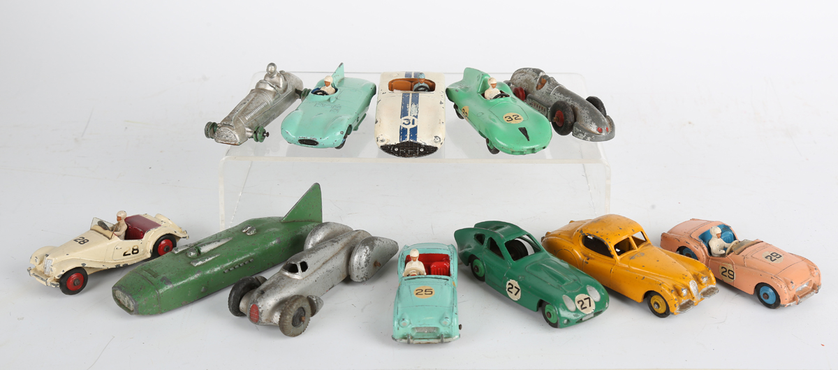 Twelve Dinky Toys sport and racing cars, including No. 157 Jaguar, No. 236 Connaught, No. 238 Jaguar D Type and No. 111 Triumph TR2 (playwear and paint chips).