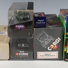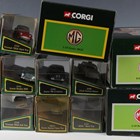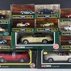 A collection of Corgi Classics vehicles, including No. 01805 Gold Plated Jaguar Mk III, No. C953/7 Bedford O series pantechnicon 'Camp Hopson' and No. 97072 'The Provincial Set' Gosport & Fareham bus set, together with three 1:18 scale model MG cars, the majority boxed.