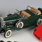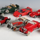 Seven Franklin Mint 1:24 scale model cars, comprising 1938 Alvis 4.3 litre, Ferrari F40, 1958 Ferrari 250 Testa Rossa, 1930 Bugatti Royal Coupé Napoléon, 1928 Stutz Black Hawk Boattail Speedster, 1930 Duesenberg J Derham Tourster and Jaguar SS-100, together with three Danbury Mint 1:24 scale model cars, comprising 1934 Packard V-12 Lebaron Speedster, 1935 Duesenberg SSJ Speedster in grey and red, and 1932 Cadillac V-16 Sport Phaeton, some boxed.