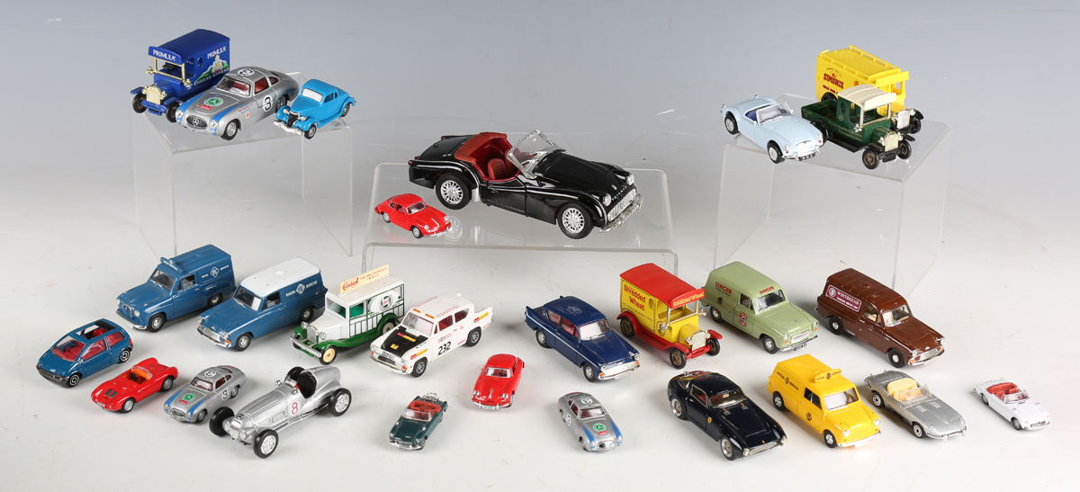 A collection of Lledo Vanguards, Lledo and Oxford Die-Cast model cars and commercial vehicles, boxed and loose.