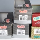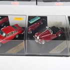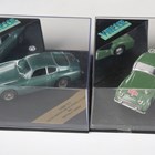 Four Quartzo 1:43 scale model cars, comprising Jaguar XK120 C Type and three Jaguar D Type, three cased, together with seven Vitesse model cars, including Aston Martin DB4, Ferrari 308 GTB Daytona 1978 and Morgan 4/4 1600 convertible, all within plastic display boxes.
