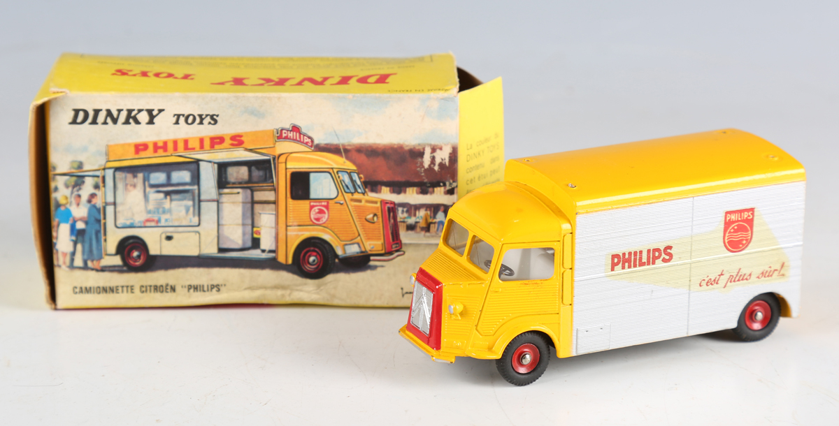 A French Dinky Toys No. 587 Camionnette Citroën ‘Philips’ in yellow and silver with two parts of the roof sign, boxed (some paint chips, box creased and scuffed, lacking end flap).