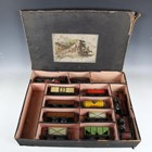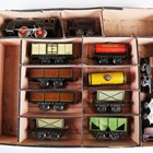 A Karl Bub (KBN) O gauge tinplate clockwork goods train set, comprising 0-4-0 locomotive, tender, two tankers, two side tipping wagons, two open wagons, box van and hopper, boxed (some playwear, box van lacking roof, box and lid damaged), together with a Wells clockwork locomotive, a Bing tender, a coach and two Hornby carriage nameplates.