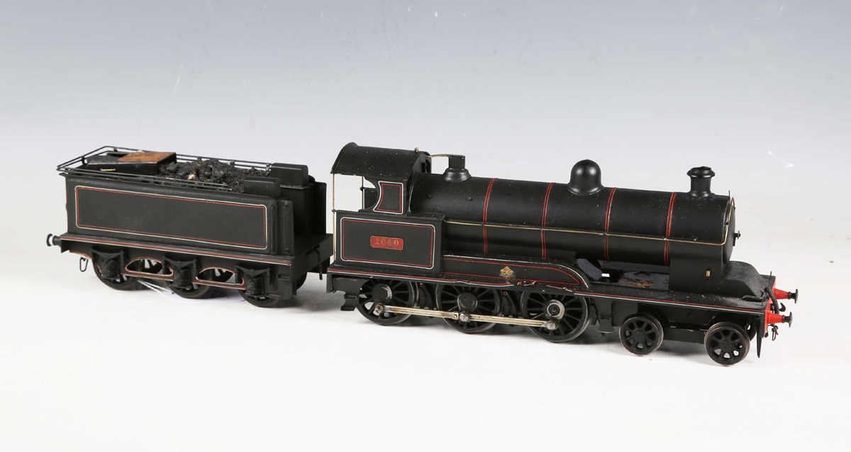 A kit-built O gauge electric 4-6-0 locomotive 1640 and tender in lined black.