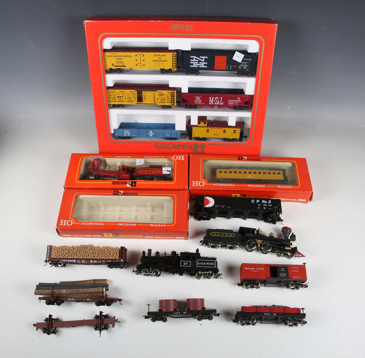 A group of Rivarossi HO gauge American outline items, including two locomotives and tenders, a twin bogie tank locomotive, goods rolling stock and six coaches in Union Pacific livery, the majority boxed.