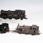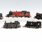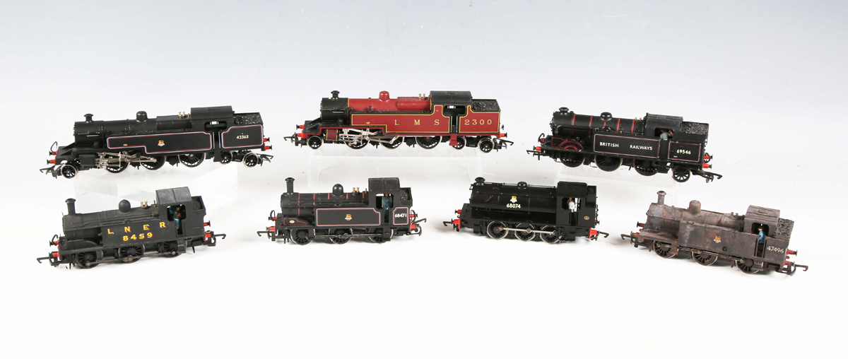 Seven Hornby OO gauge tank locomotives, including 2300 in LMS lined red, 42363 in BR lined black and 69546 in BR lined black.