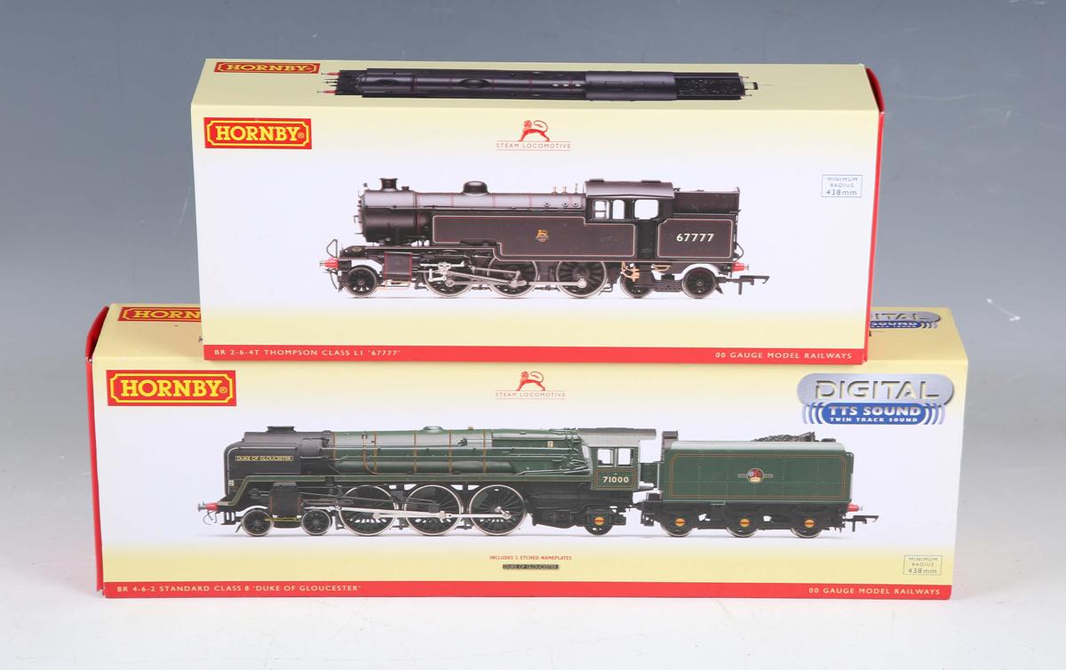 A Hornby Digital TTS Sound OO gauge R3244TTS Class 8 locomotive 71000 'Duke of Gloucester' and tender, together with a DCC Ready R3190 Thompson Class L1 tank locomotive 67777, both boxed.