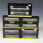A Graham Farish by Bachmann N gauge No. 371-875A 108 DMU two-car set in BR green with speed whiskers, together with four coach packs, comprising No. 374-910 set of SE&CR 60' birdcage coaches in SE&CR Wellington brown, No. 374-911 set of SE & CR 60' birdcage coaches in Southern Railway olive green, No. 374-990 MK1 coach twin pack works test train in BR blue and grey (weathered), and No. 374-995 Highlander coach pack MK2 TSO & Class 101 DTCL in BR Highland Rail green and cream, all boxed.