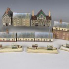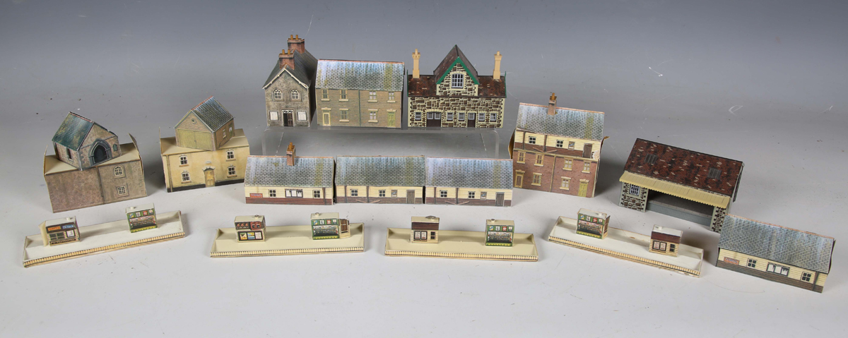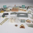 A group of Graham Farish N scale lineside buildings, including two-lane engine shed, Sheffield Park booking office and girder bridge, boxed.