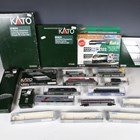 A group of Kato N gauge American outline railway items, comprising No. 176-5603 diesel locomotive 9122 Canadian Pacific, No. 176-274 diesel locomotive Baltimore and Ohio, No. 137-2022 GG1 locomotive 918 Amtrak, No. 176-6022 GE P42 Genesis locomotive Amtrak 1971-2011, No. 106-8701 MPH36PH Chicago METRA Gallery Bi-Level Commuter Train, No. 106-3516 Amtrak Superliner Phase IVb 4-Car Set B, No. 106-096 Smoothside Passenger Car Illinois Central 4-Car Add-on Set, No. 106-6282 Amfleet, Viewliner Intercity Express Phase VI 3-Car Set, No. 106-3506 Amtrak Material Handling Car Phase III Set C2, two other goods wagons, incline pier set and piers, all boxed.