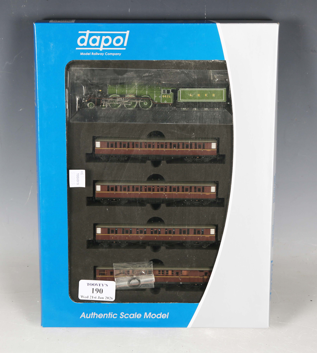 A Dapol N gauge set No. 2S-011-005 A3 locomotive 4472 'Flying Scotsman' (as preserved) and tender in green, with four Gresley coaches in maroon, boxed.