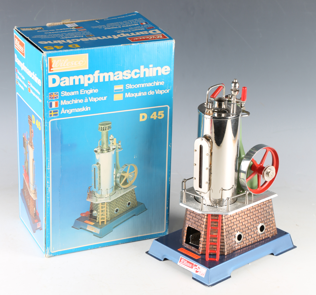 A Wilesco S45 steam engine, boxed with unopened accessories and instructions (box lightly scuffed and stained).