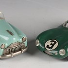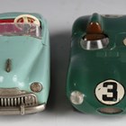 A Schuco Tacho-Examico 4002 tinplate clockwork two-seat car, together with a Merit plastic model of a D-type Jaguar.