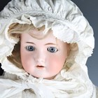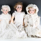 Three Simon & Halbig K&R bisque socket head dolls, comprising a baby doll, impressed '126 50', with brown wig, sleeping blue flirty eyes, open mouth and bent limb body with voice box, height 50cm, a girl doll, impressed '68', with sleeping blue eyes, open mouth, pierced ears and jointed composition body, height 66cm, and another girl doll, impressed '70', the forehead also marked 'W', with blonde wig, sleeping blue eyes, open mouth, pierced ears and jointed composition body, height 67cm (one finger missing, repairs to the bodies and overpainting).