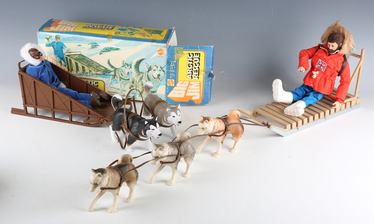 A Palitoy Action Man figure with husky sled, together with a Mattel Big Jim Arctic Rescue set, boxed.