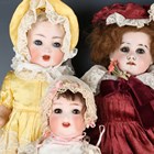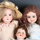 A German bisque head and shoulders doll, impressed 'GOD93', with brown wig, sleeping brown eyes, open mouth and kid body, height 43cm (head cracked), together with two Heubach Köppelsdorf bisque socket head dolls, two Schoenau & Hoffmeister bisque head dolls and a Simon & Halbig K&R bisque socket head doll.
