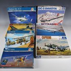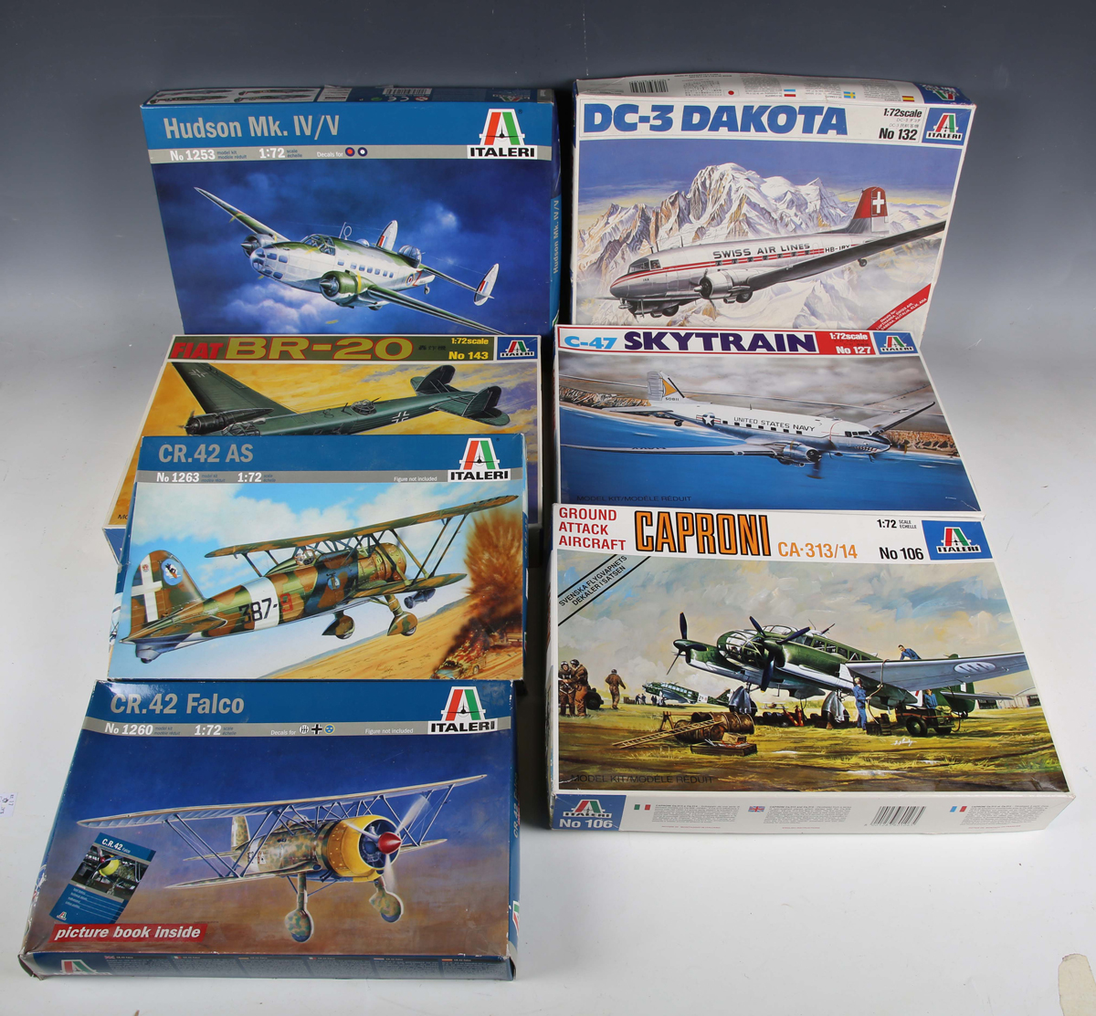 Seven Italeri 1:72 scale plastic model aircraft kits, including No. 132 DC-3 Dakota, No. 127 C-47 Skytrain and No. 1253 Hudson Mk. IV/V, all boxed (unchecked).