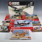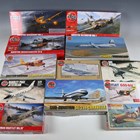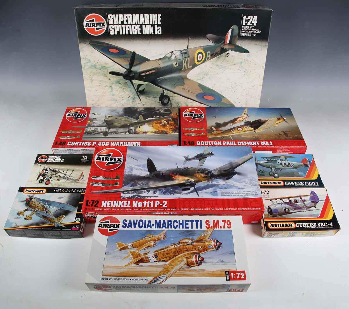 Seventeen Airfix 1:24 and 1:72 scale plastic model aircraft kits, including No. 12001 Spitfire Mk1a, Heinkel He111 P-2 and two Bristol Beaufighters, all boxed (unchecked), together with four Matchbox model aircraft kits.