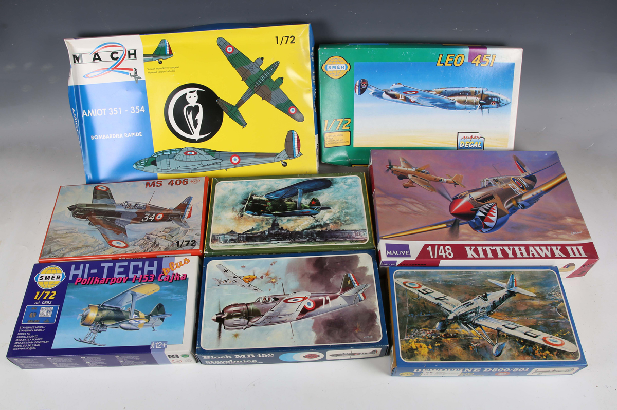 Forty-five 1:72 and 1:48 scale plastic model aircraft kits, including Smer, Minicraft, Amodel and Arma Hobby, all boxed (unchecked).