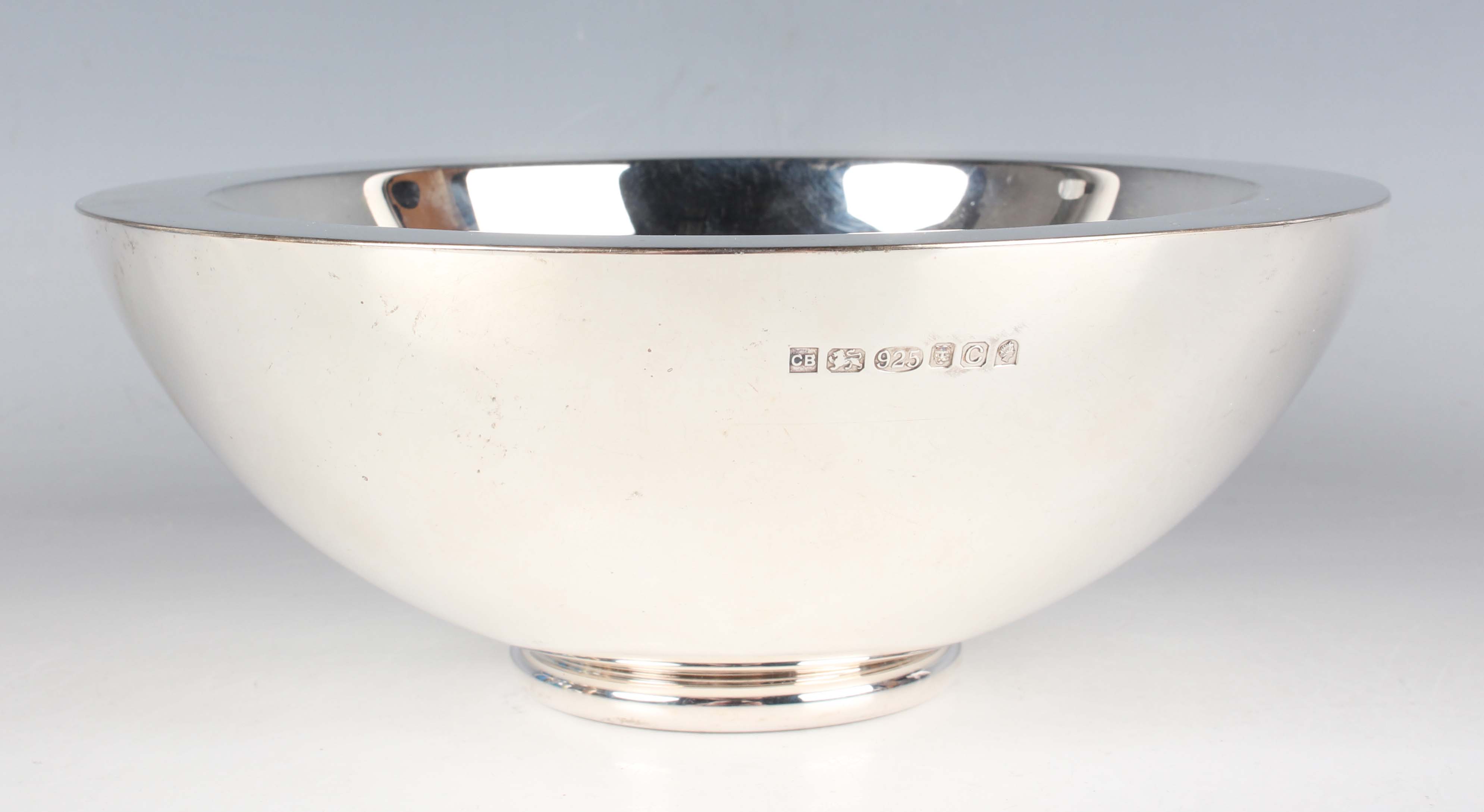 An Elizabeth II silver bowl of hollow circular form, London 2002 by Clive Edward Burr, weight 786.5g, diameter 20cm, height 7.8cm, with a box.