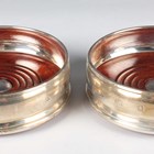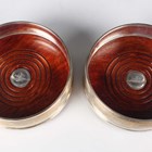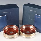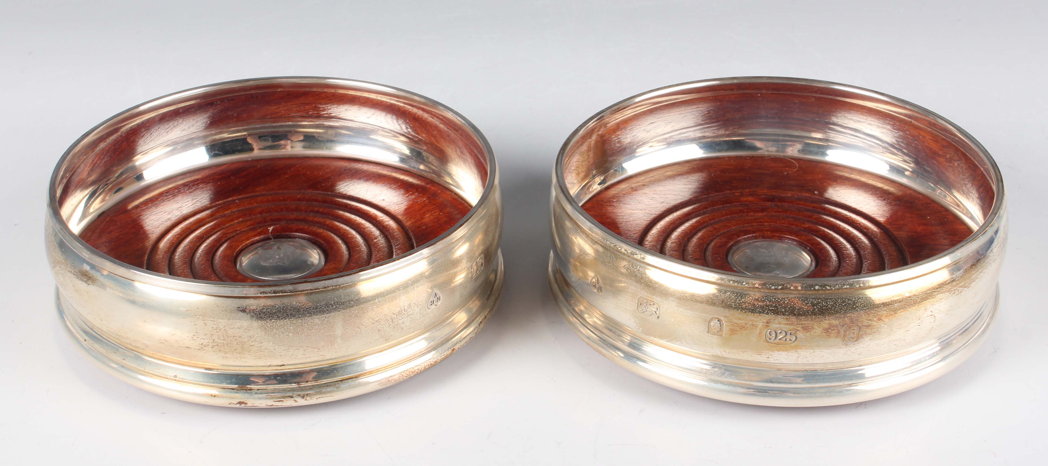 A pair of Elizabeth II silver mounted Golden Jubilee wine coasters, each engraved with a crown to the centre, London 2002 by A. Haviland-Nye, diameter 12cm, each boxed.