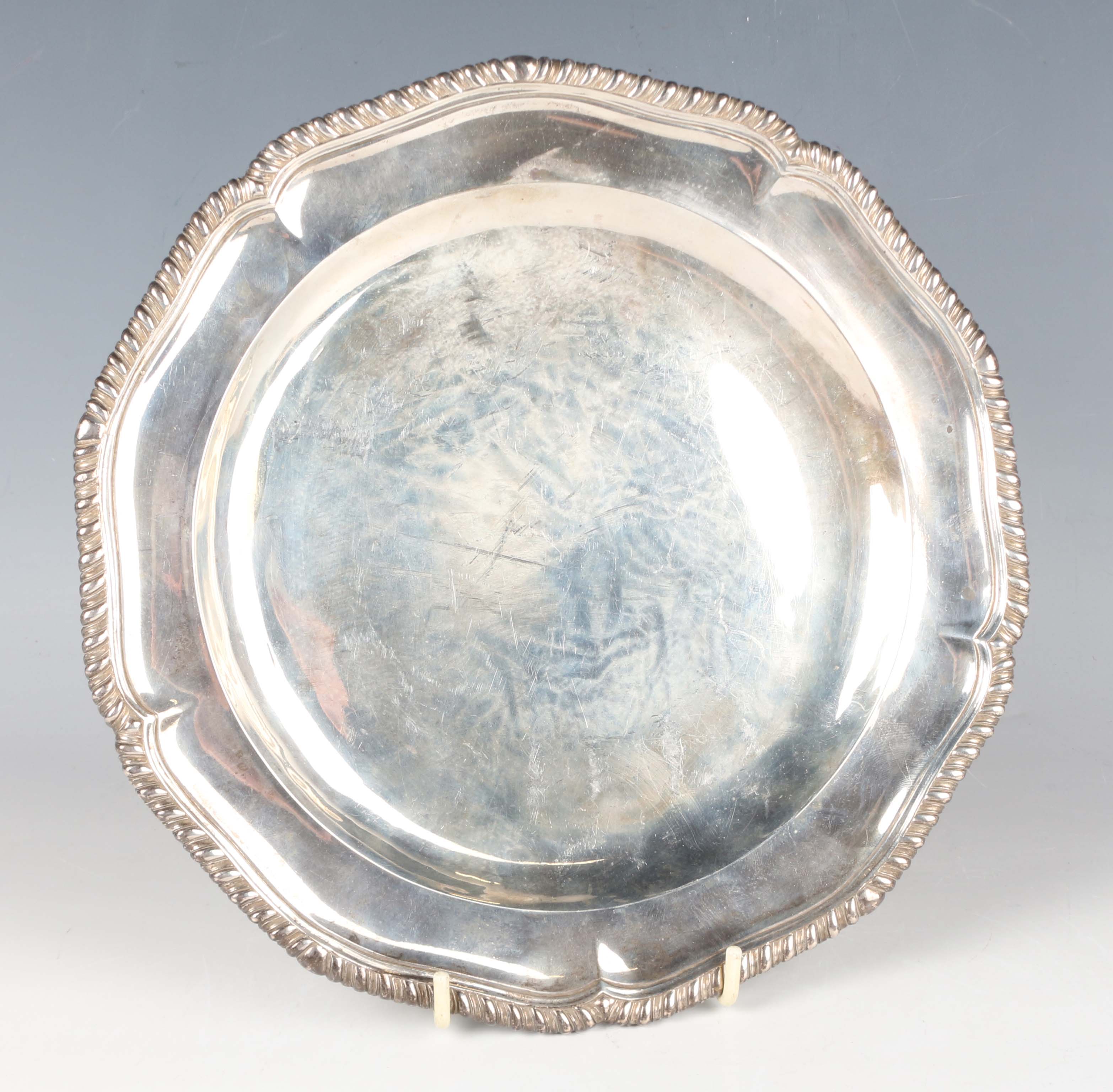 A William IV silver shaped circular plate with gadrooned rim, London 1835 by Paul Storr, weight 529.2g, diameter 24.5cm.