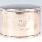 A George VI silver cylindrical box with hinged lid above engraved initials and date, with reeded rims, London 1939 by Edward Barnard & Sons Ltd, weight 375.2g, height 6.8cm.