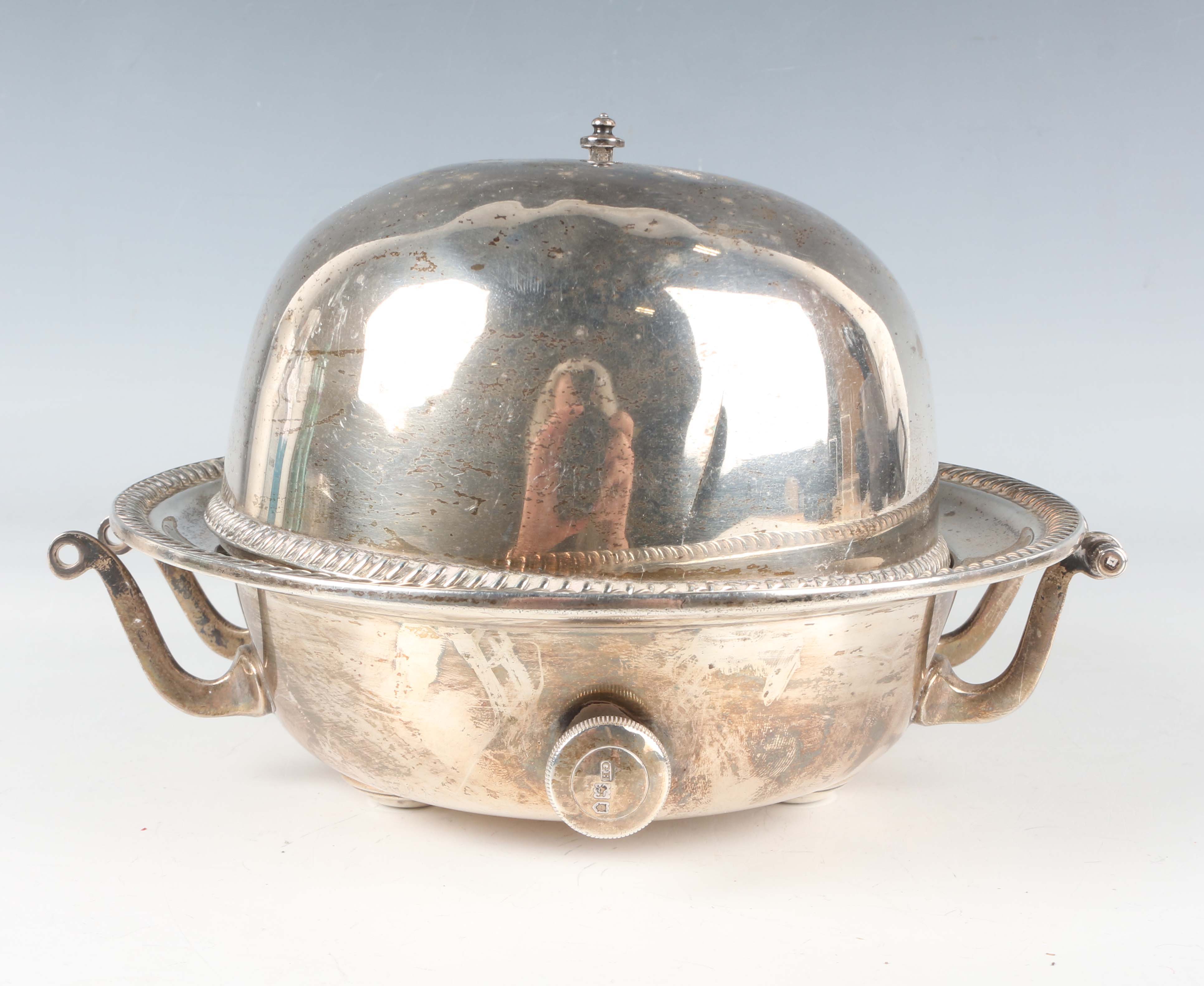 A George V silver muffin warming dish and cover with ropetwist rims, on circular feet, London 1913 by Harrison Brothers & Howson, weight 696.2g, height 12cm.