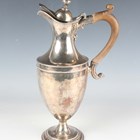 A George III Scottish silver coffee pot, the hinged lid with acorn finial above a tapering neck and ovoid body, crest engraved, on a circular foot, with beaded rims, Edinburgh 1781 by Patrick Robertson, weight 611.3g, height 32.5cm.