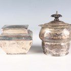 A late Victorian silver tea caddy of tapering rectangular form with hinged lid above ropetwist borders, Sheffield 1900 by John Round & Son Ltd, height 7cm, and another silver tea caddy, total weight 264g.