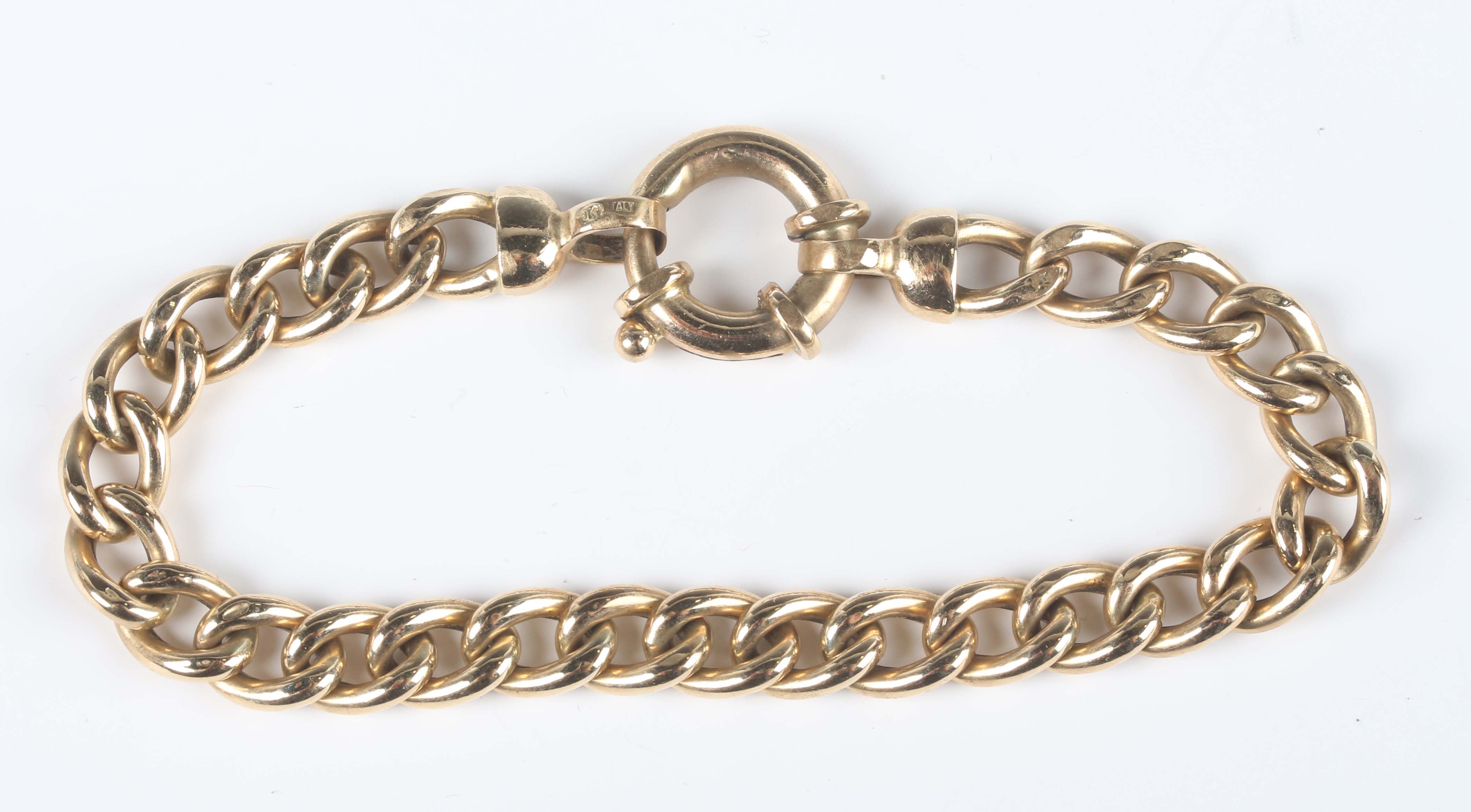 An Italian 9ct gold faceted curblink bracelet on a boltring clasp, weight 11.3g, length 19.5cm.