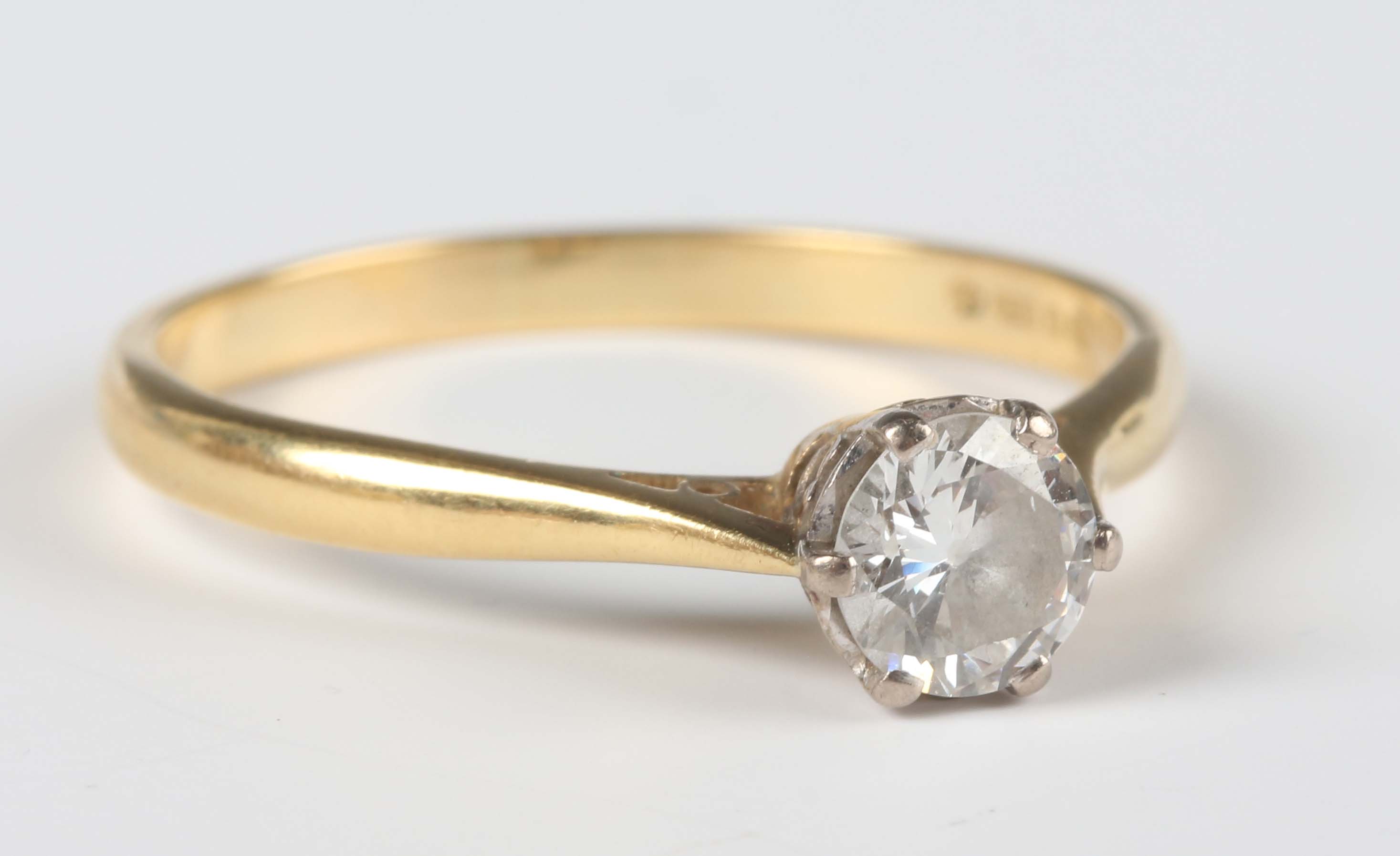 An 18ct gold and diamond single stone ring, claw set with a circular cut diamond, weight 3.1g, diamond weight approx 0.50ct, colour grade approx J-K, clarity grade approx SI2, ring size approx S.