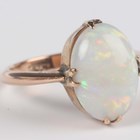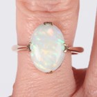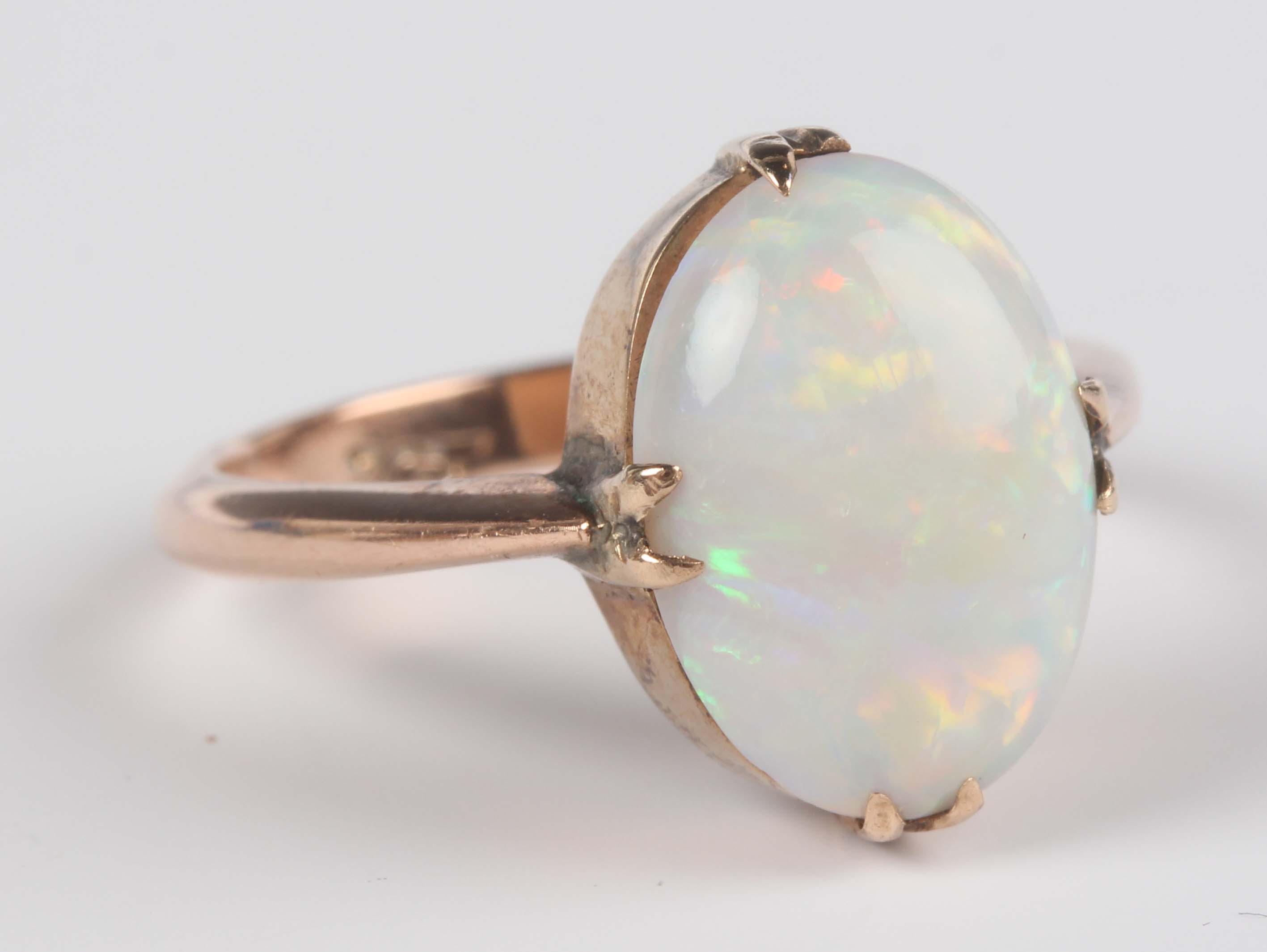 A gold ring, claw set with an oval opal, detailed ‘9ct’, weight 3.2g, ring size approx O1/2.
