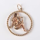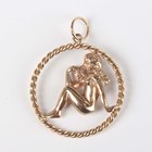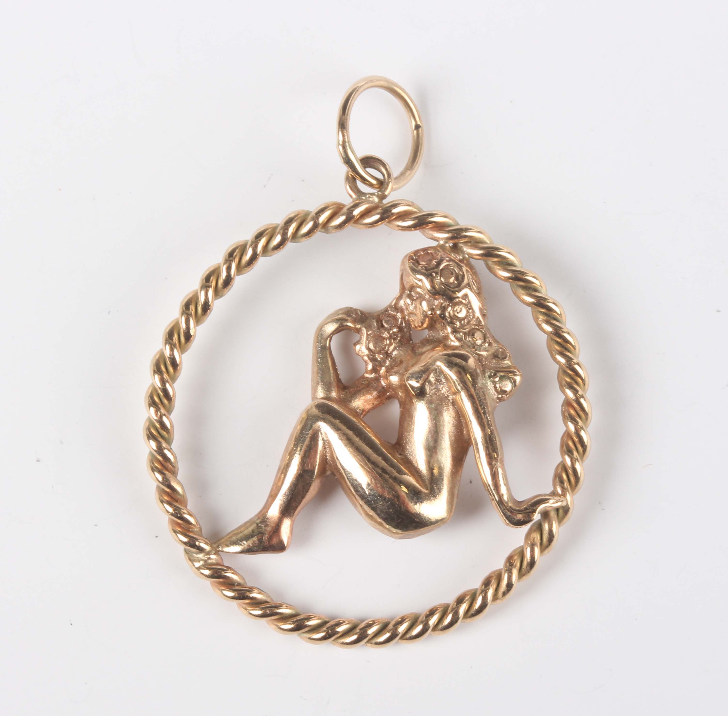 A 9ct gold pendant, designed as a girl within a circular ropetwist surround, weight 3.8g, length 3.5cm.