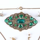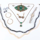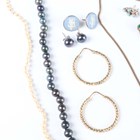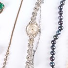 A group of jewellery, comprising a pair of 9ct gold hoop shaped earrings, weight 3.8g, four further pairs of earrings and earstuds, a graduated cultured pearl necklace, a freshwater cultured pearl necklace, a paste set necklace, a paste set brooch and a Regency marcasite bracelet wristwatch.